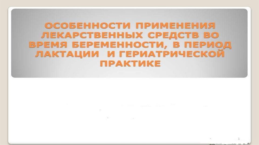 Особенности применения лекарственных средств во время беременности, в период лактации и гериатрической практике