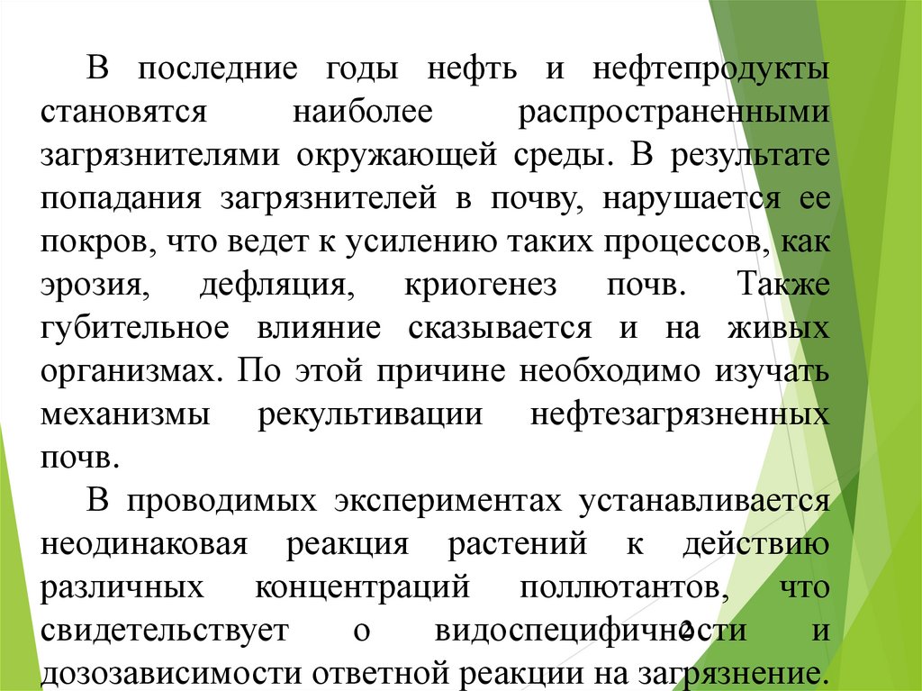 нефтепродуктов испытывали больше на корневой системе, нежели надземной по