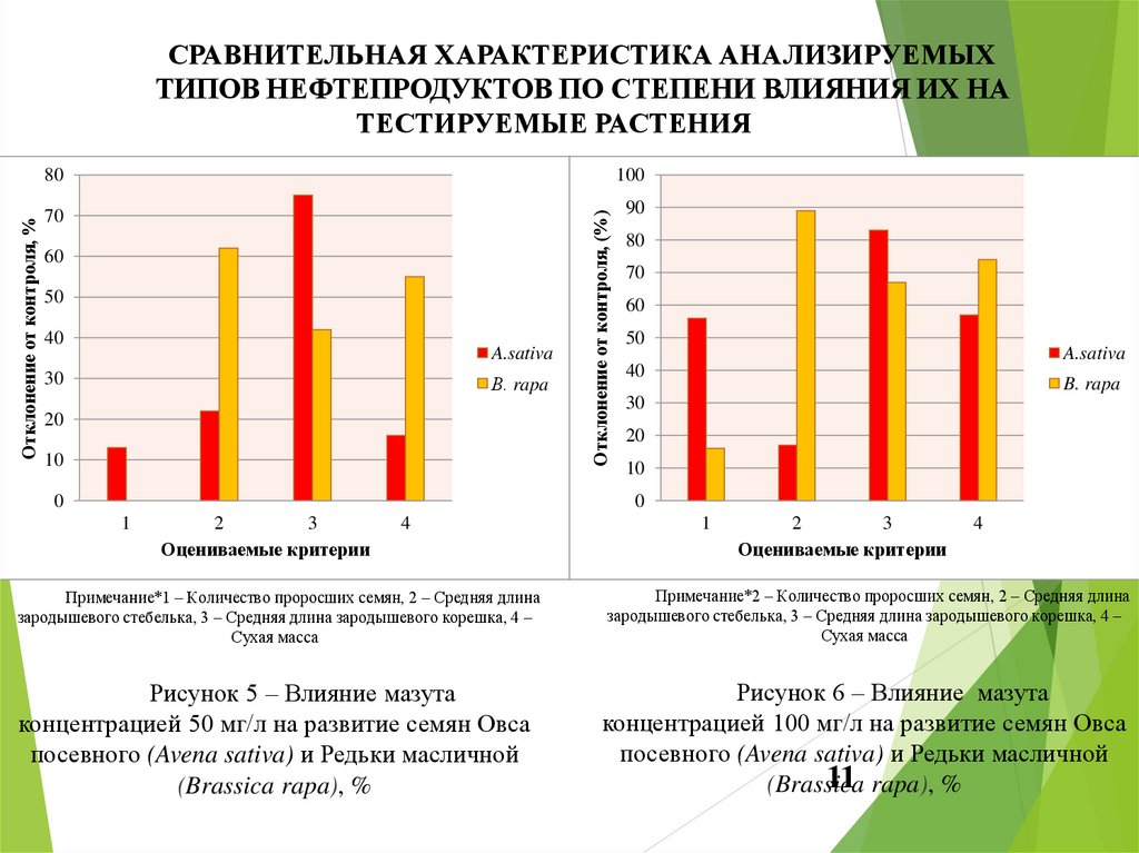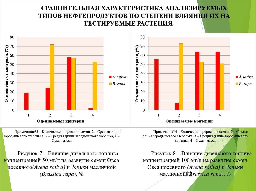 • Негативное действие нефтепродуктов, по всем анализируемым параметрам, сильнее