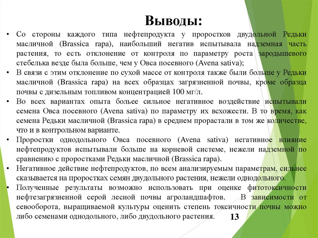 • Полученные результаты возможно использовать при оценке фитотоксичности
