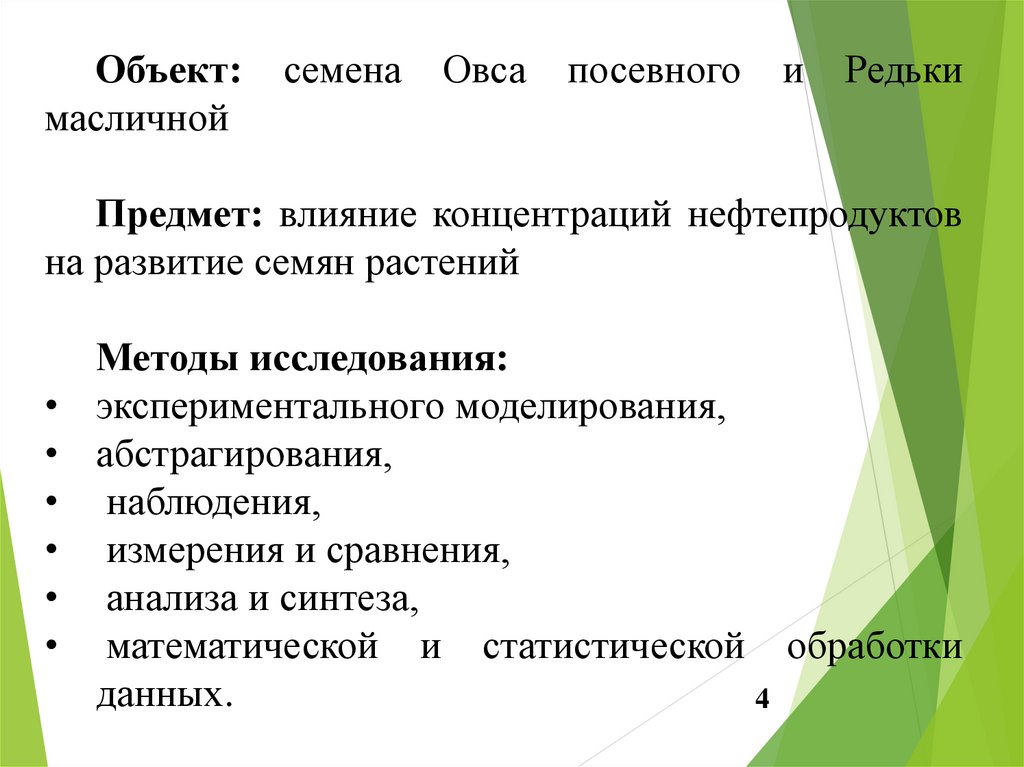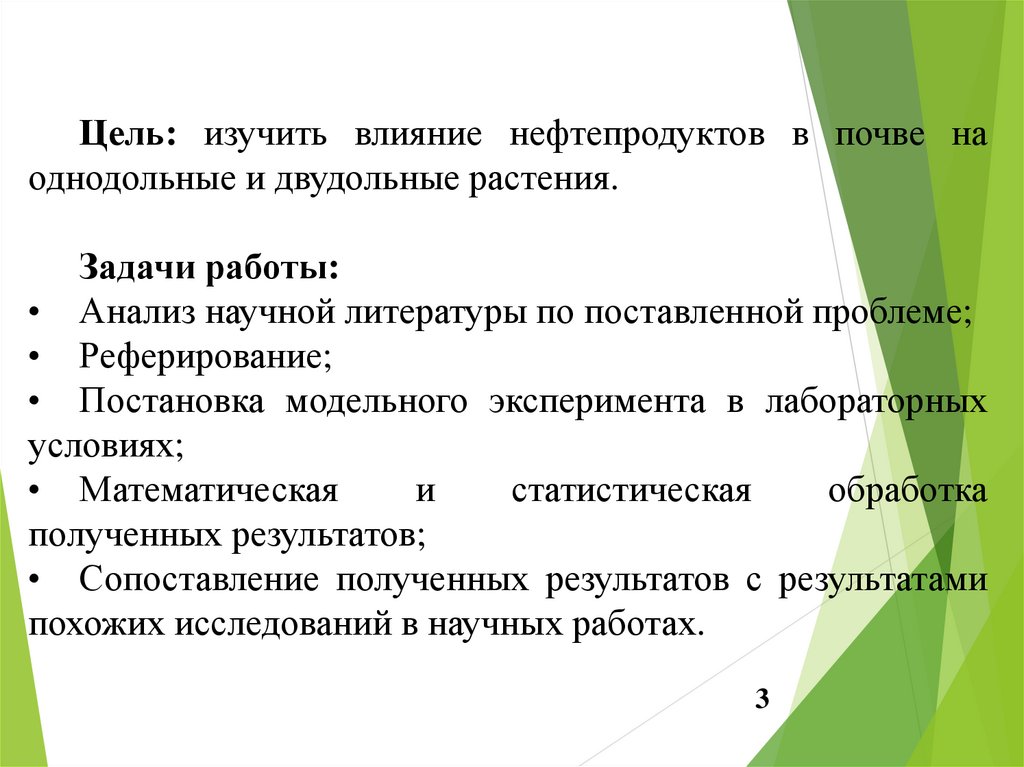 Цель: изучить влияние нефтепродуктов в почве наоднодольные и двудольные растения.