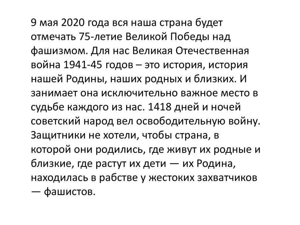 9 мая 2020 года вся наша страна будетотмечать 75-летие Великой Победы над