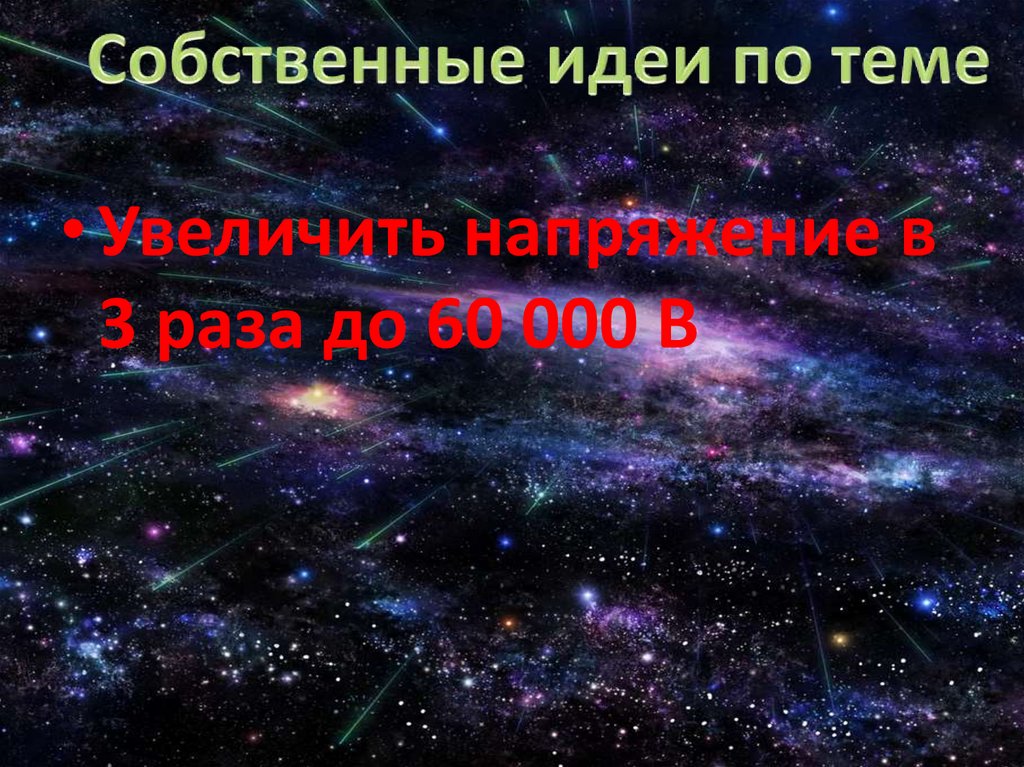 • Увеличить напряжение в3 раза до 60 000 В