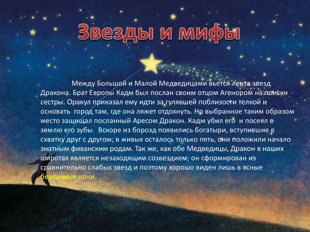 Между Большой и Малой Медведицами вьется лента звездДракона. Брат Европы Кадм был послан своим отцом Агенором на поиски