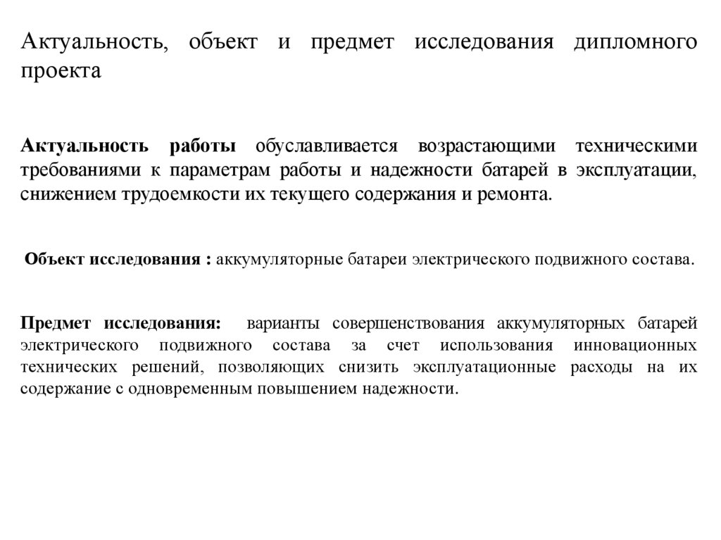 Объект исследования : аккумуляторные батареи электрического подвижного состава.