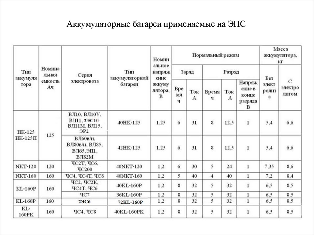 Аккумуляторные батареи применяемые на ЭПСНа электрическом подвижном составе в основном применяются