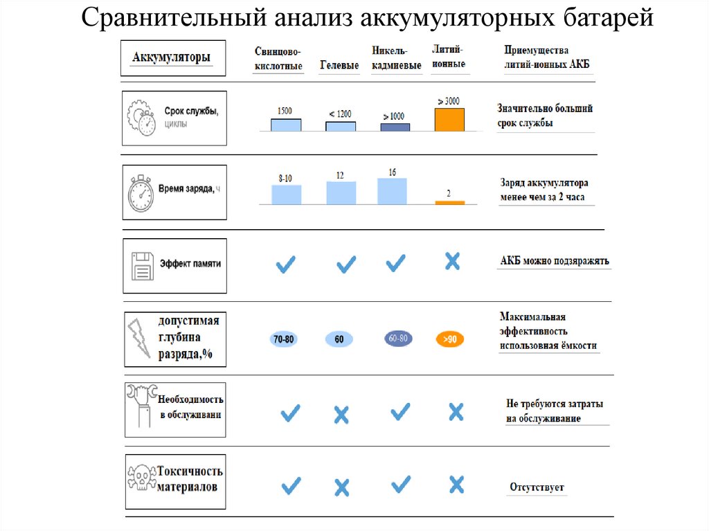 Можно сделать вывод, что применение современный литий-ионных АКБ считает рентабельным.