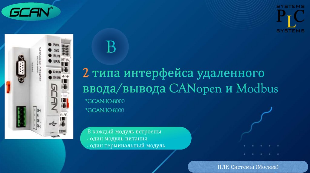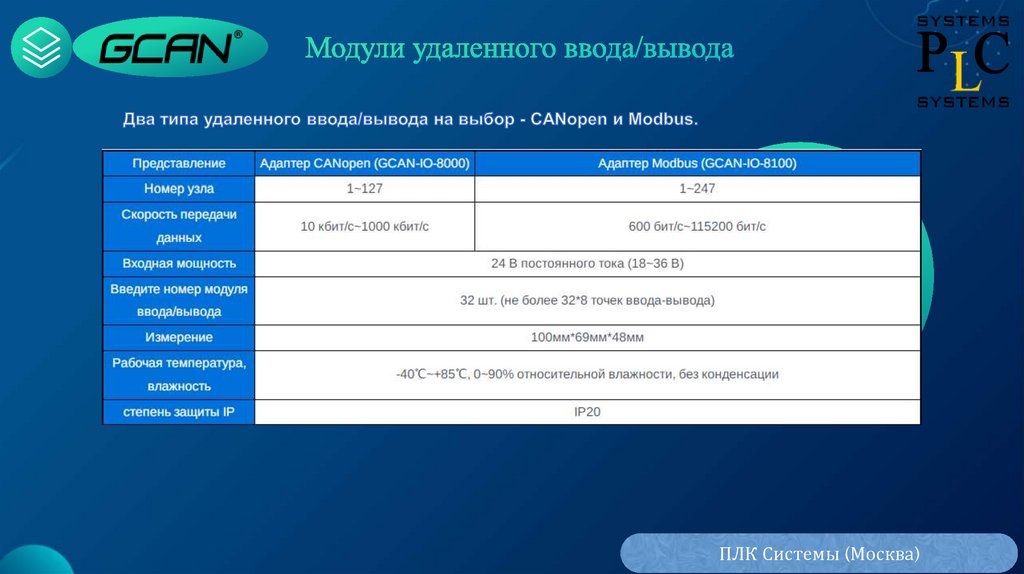 ПЛК GCAN и коммуникационные модули ввода/вывода