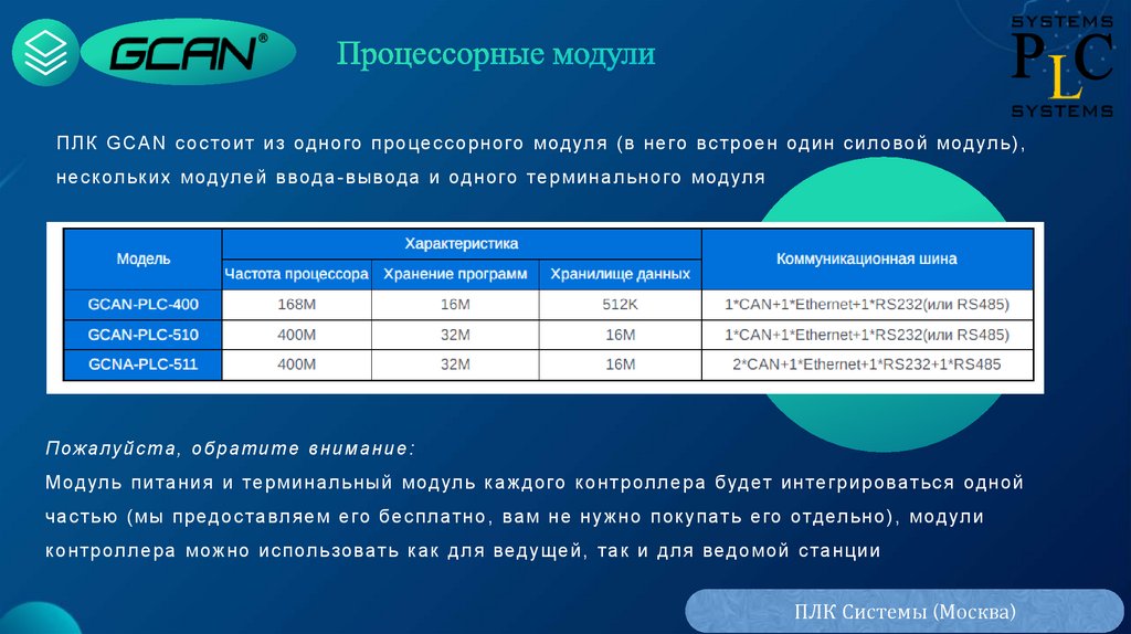 М од ул ь питания и терминал ь ны й мод ул ь к ажд ого к онтрол л е ра буд ет интег рир оват ьс я од ной