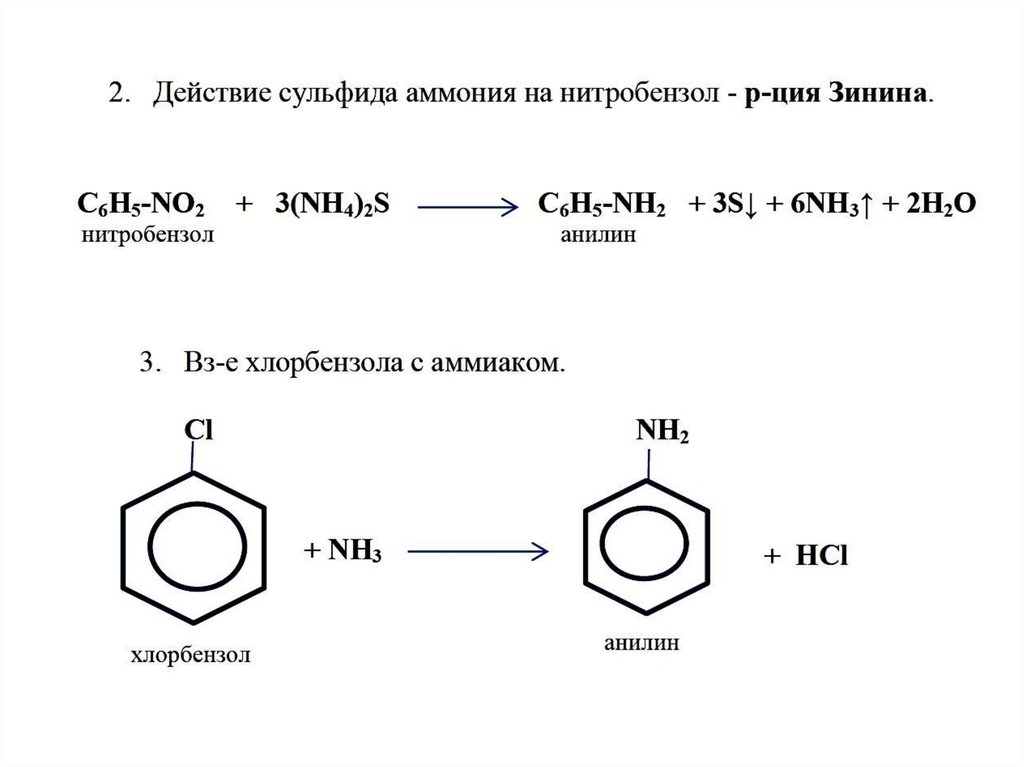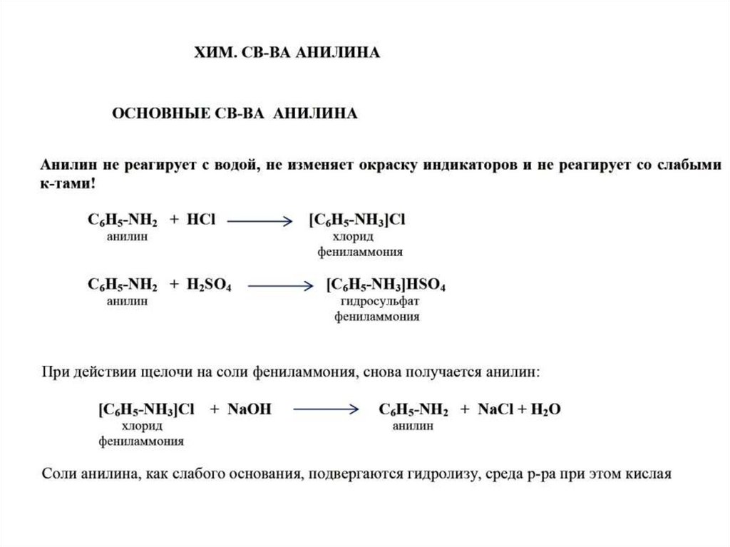 Анилин - бесцв., прозрачная маслянистая жидкость,