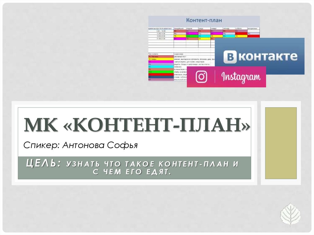 МК «КОНТЕНТ-ПЛАН»Спикер: Антонова Софья