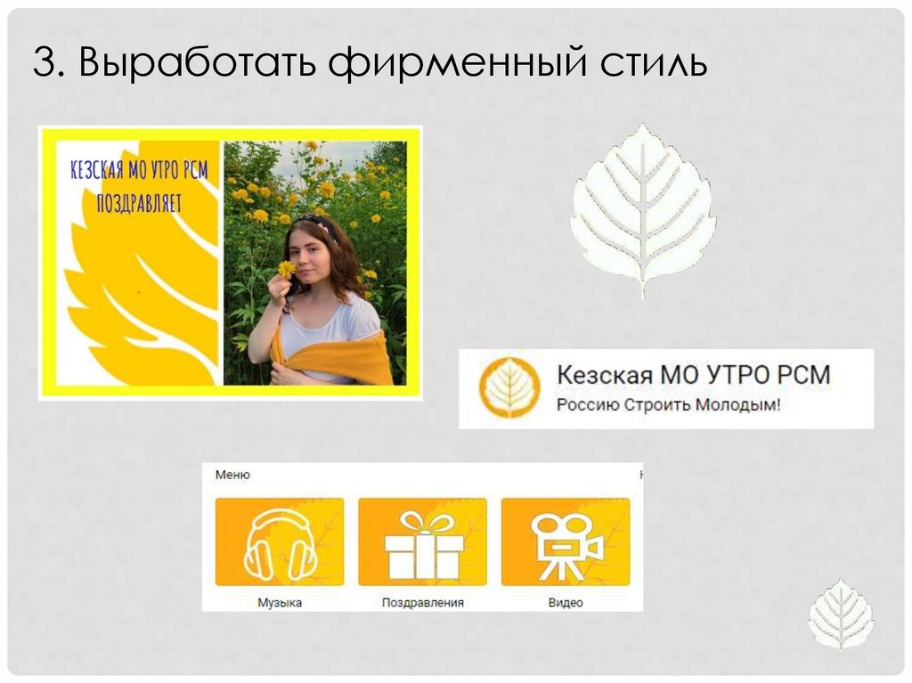 3. Выработать фирменный стиль9. Что включает в себя контент-план?