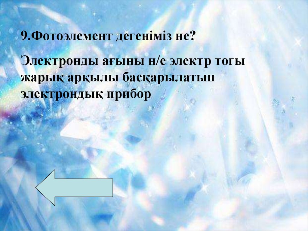 9.Фотоэлемент дегеніміз не?Электронды ағыны н/е электр тогы