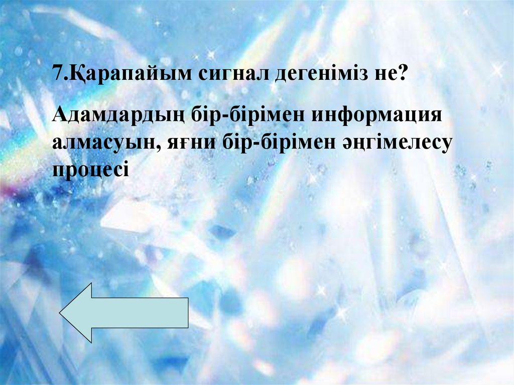 7.Қарапайым сигнал дегеніміз не?Адамдардың бір-бірімен информация