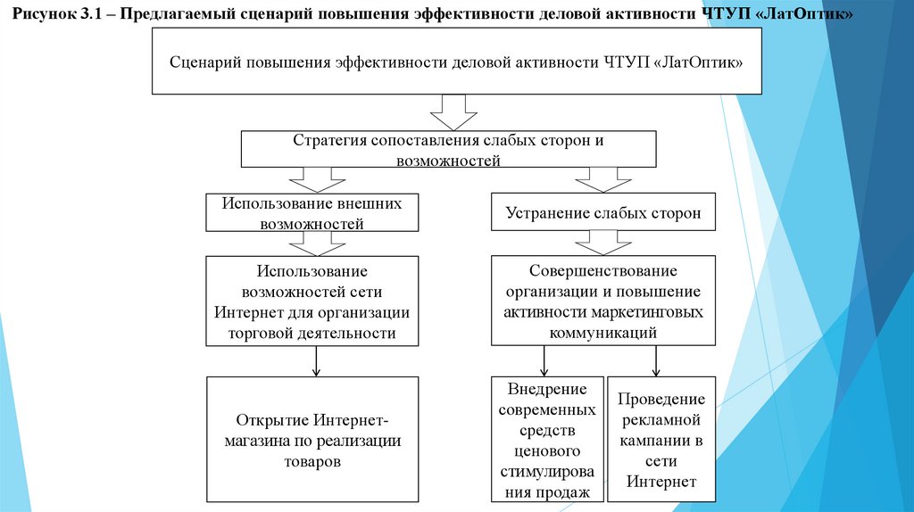 Рисунок 3.1 – Предлагаемый сценарий повышения эффективности деловой активности ЧТУП «ЛатОптик»Сценарий повышения эффективности деловой активности ЧТУП «ЛатОптик»