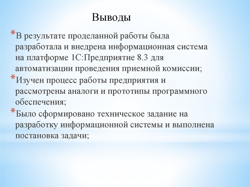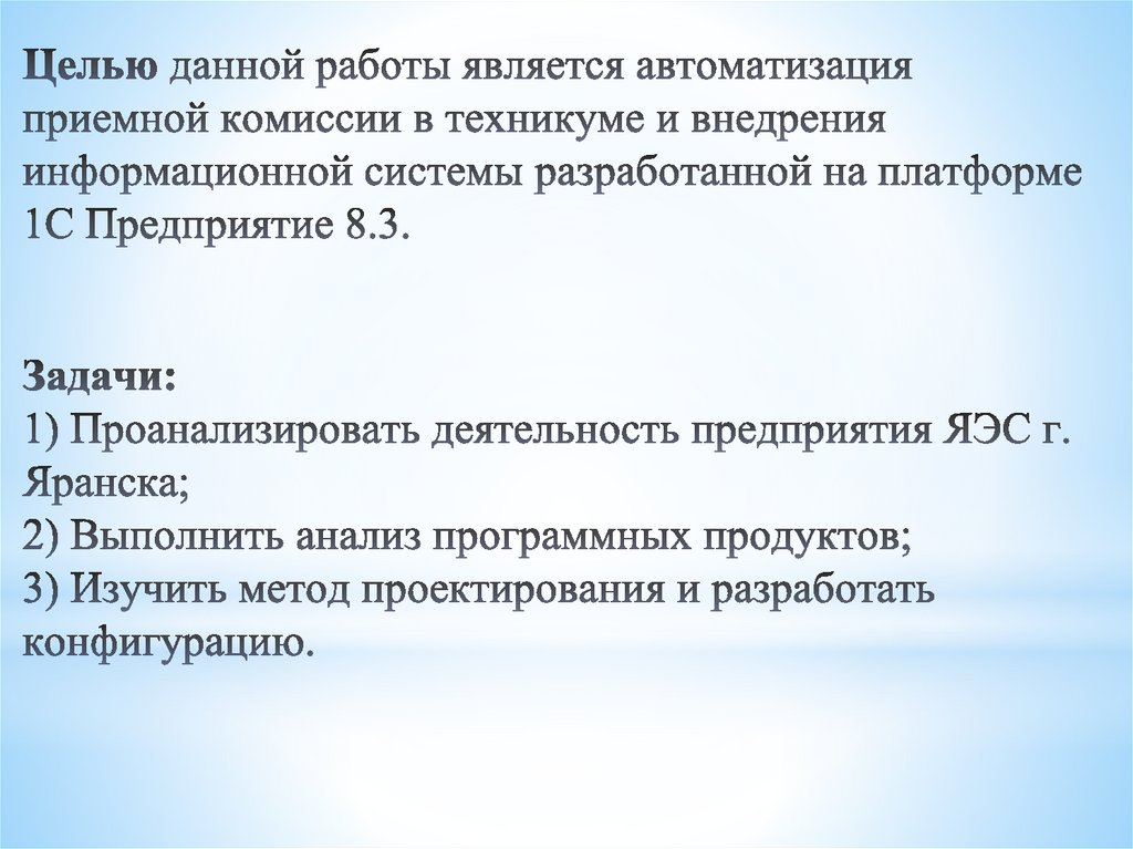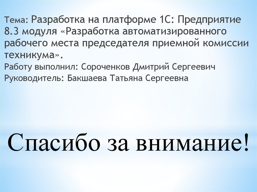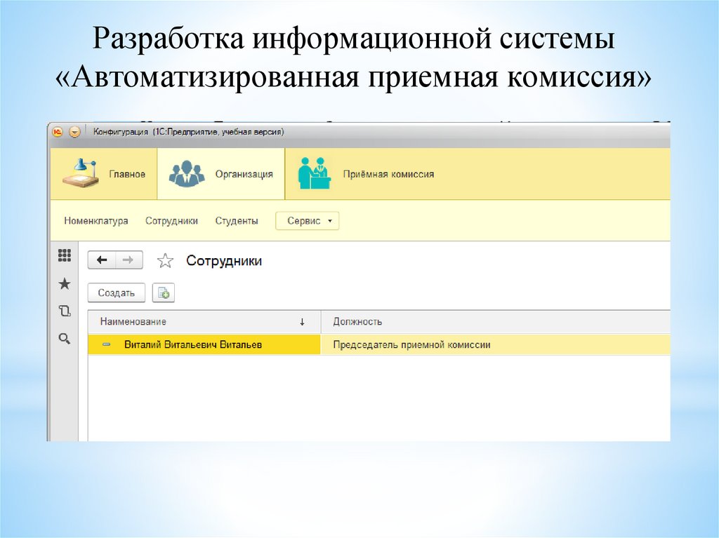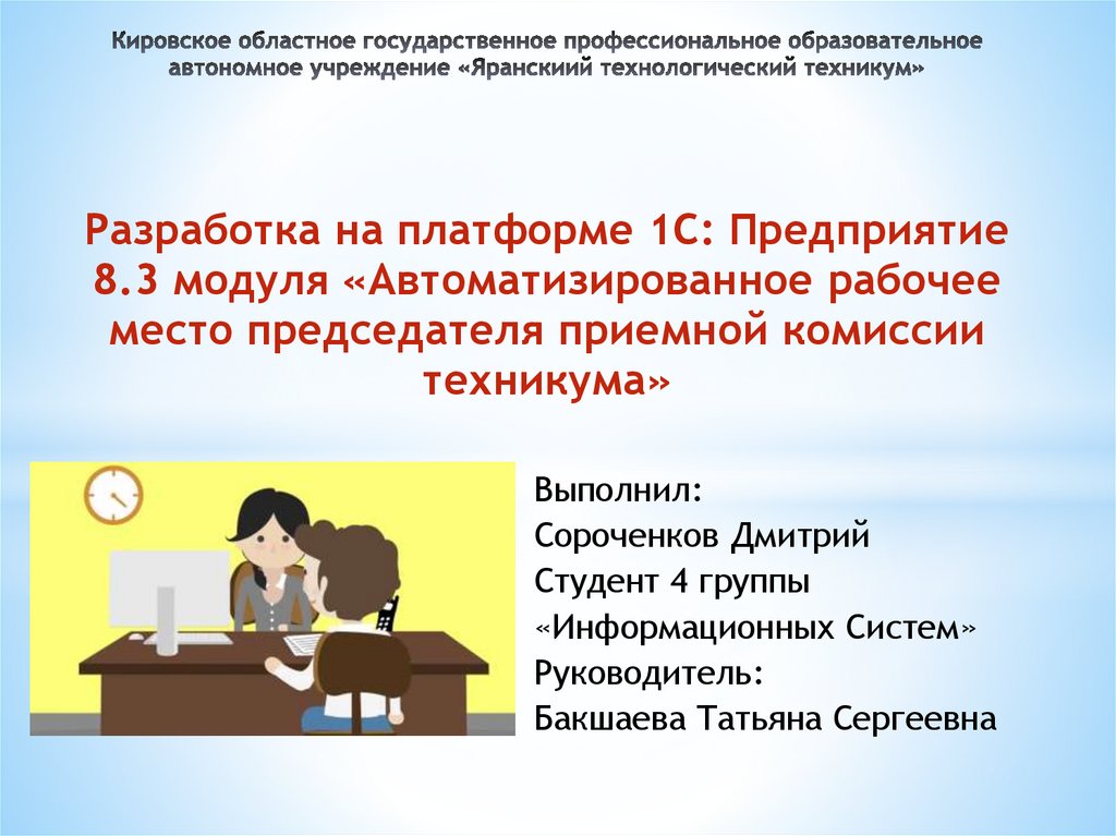 Разработка на платформе 1С: Предприятие 8.3 модуля "Автоматизированное рабочее место председателя приемной комиссии техникума"
