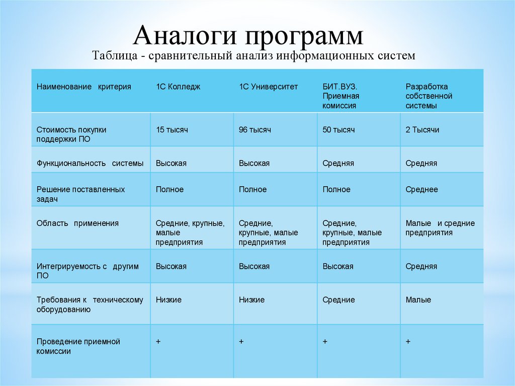 Аналоги программТаблица - сравнительный анализ информационных систем