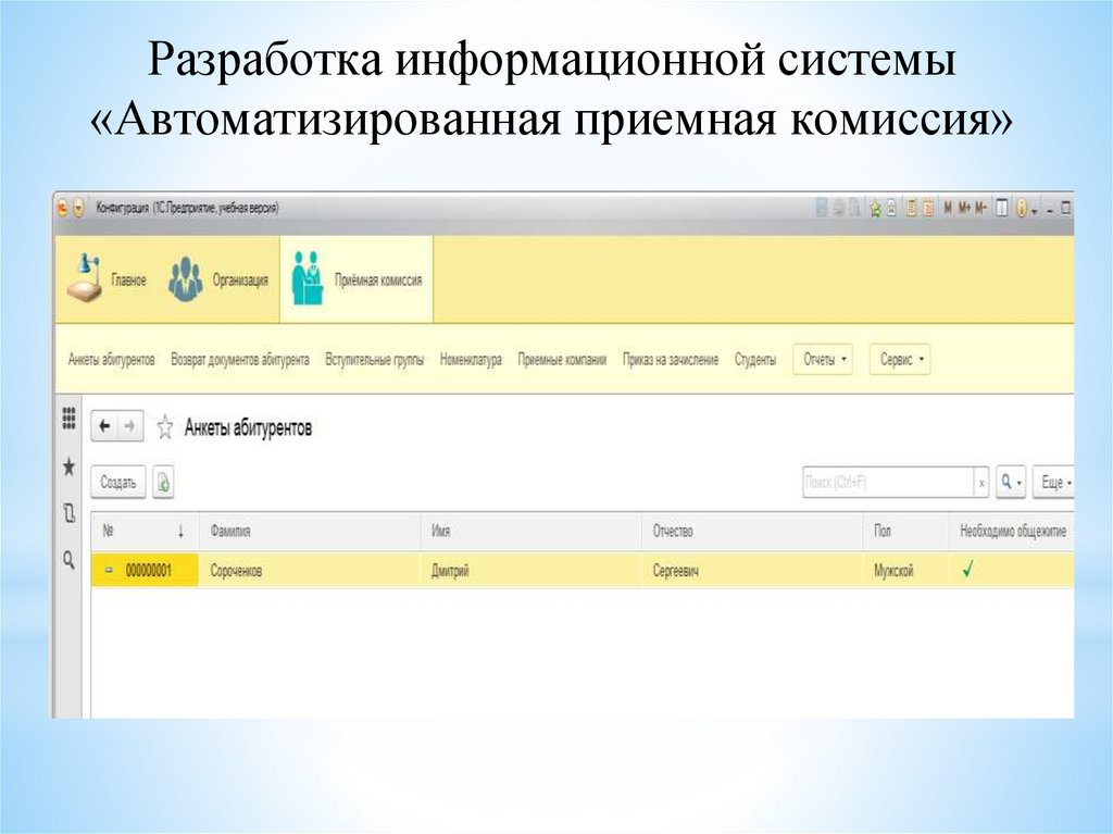 Разработка информационной системы«Автоматизированная приемная комиссия»