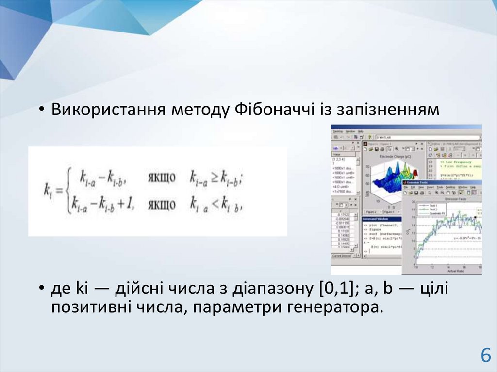 • Використання методу Фібоначчі із запізненням• де ki — дійсні числа з діапазону [0,1]; a, b — цілі