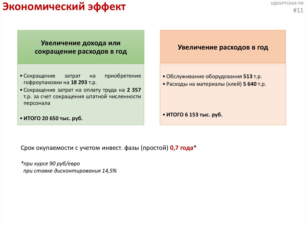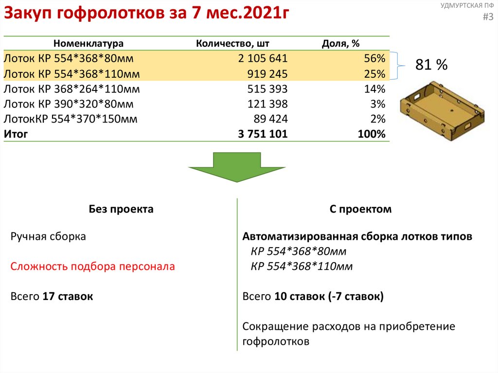 сокращение затрат на приобретение и сборку гофролотков на 14,5 млн.руб/год за счет