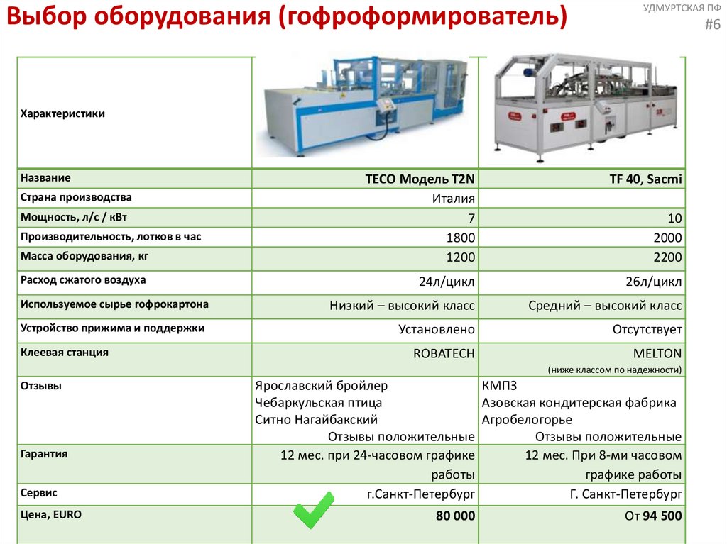 Выбор оборудования (гофроформирователь)УДМУРТСКАЯ ПФ