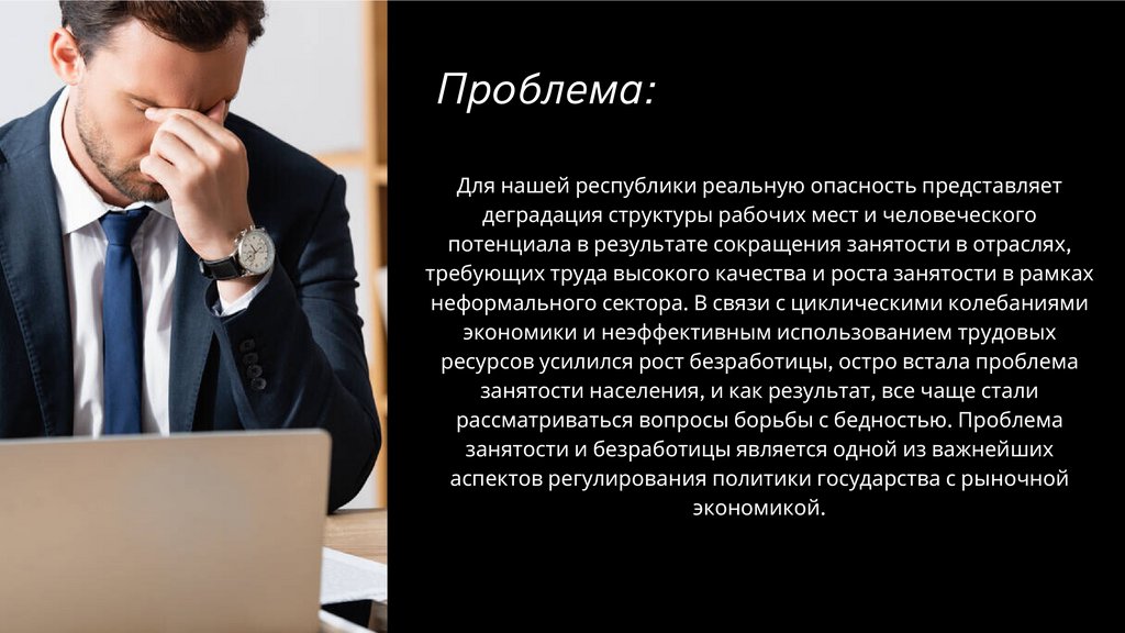 Безработица пагубно сказывается на всейэкономической жизни общества, ведёт к
