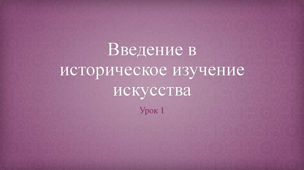 1. Введение в историческое изучение искусства