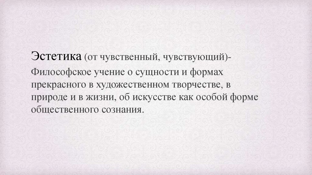 Эстетика (от чувственный, чувствующий)Философское учение о сущности и формахпрекрасного в художественном творчестве, в