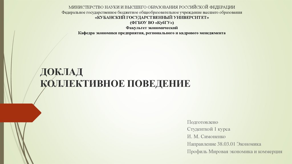 1. ДОКЛАД КОЛЛЕКТИВНОЕ ПОВЕДЕНИЕ