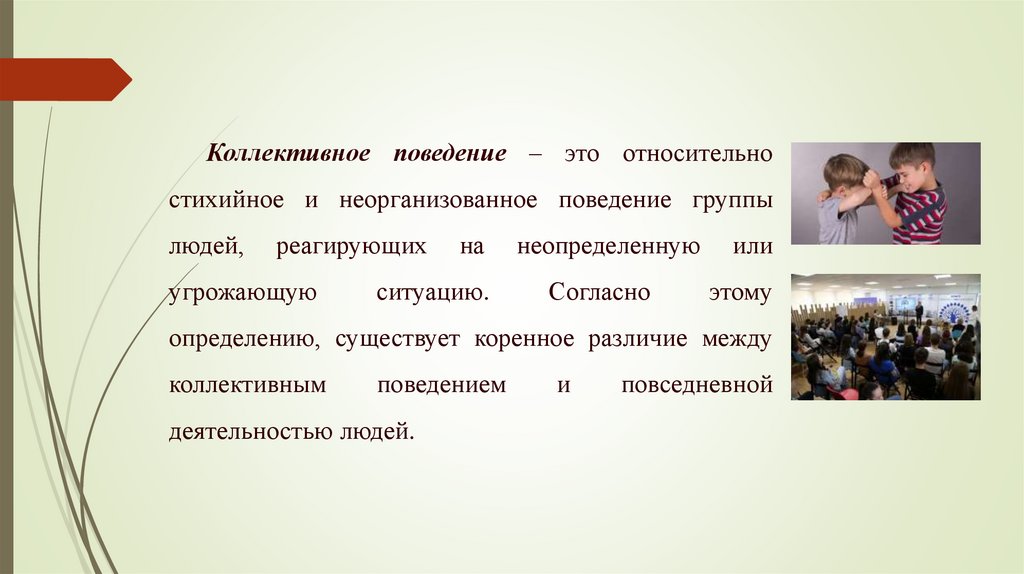 Коллективное поведение – это относительностихийное и неорганизованное поведение группы