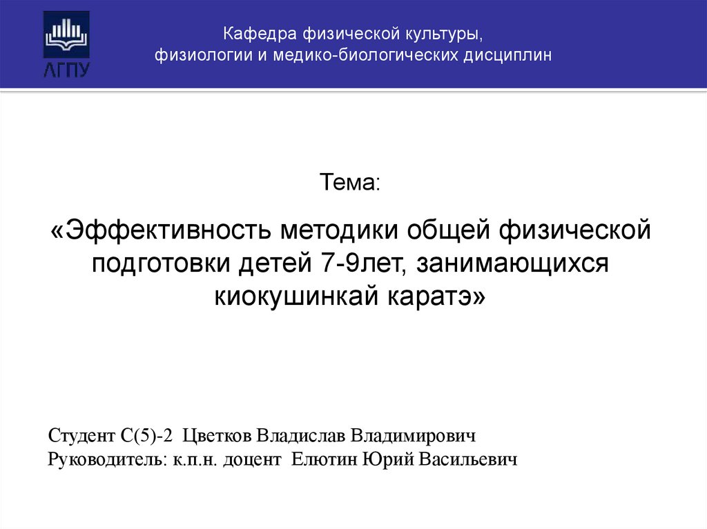 Руководитель: к.п.н. доцент Елютин Юрий Васильевич