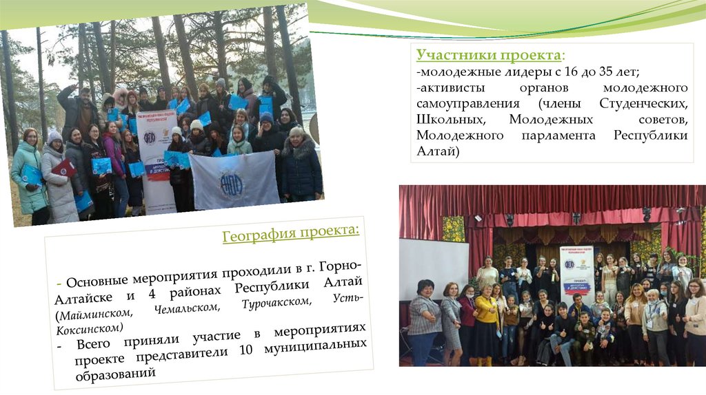 Участники проекта:-молодежные лидеры с 16 до 35 лет;