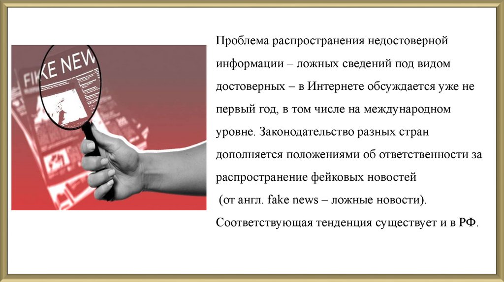 Проблема распространения недостовернойинформации – ложных сведений под видом