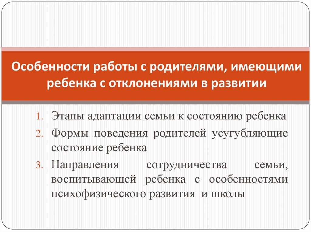 1. Особенности работы с родителями, имеющими ребенка с отклонениями в развитии