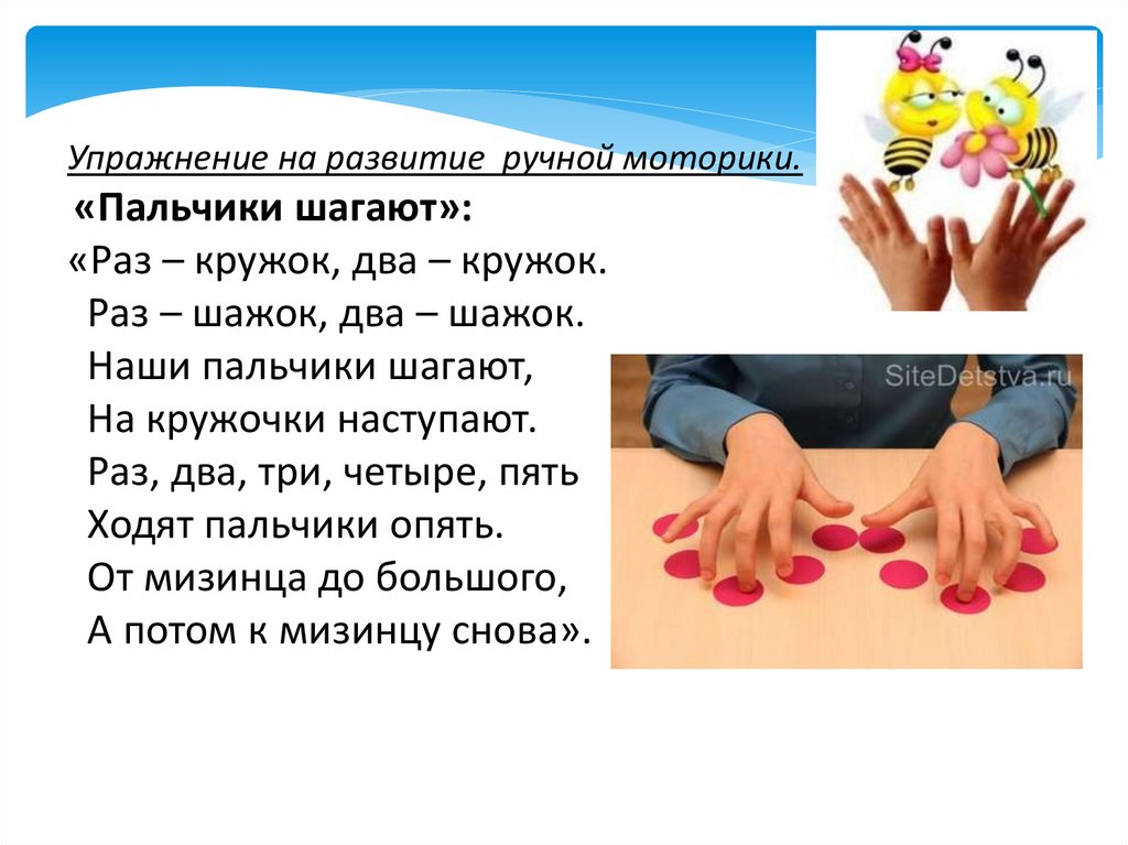 Упражнение на развитие ручной моторики.«Пальчики шагают»: