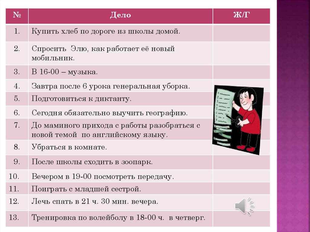 дел и планирование дня.
