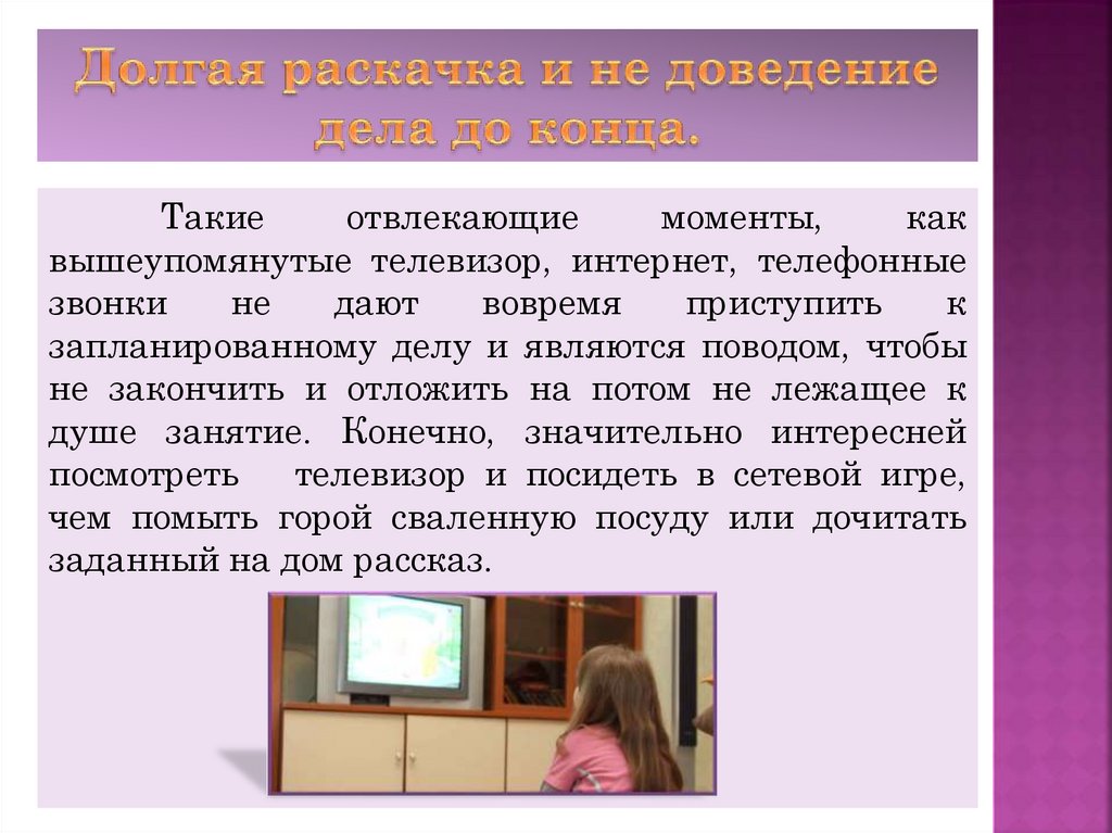 не закончить и отложить на потом не лежащее к