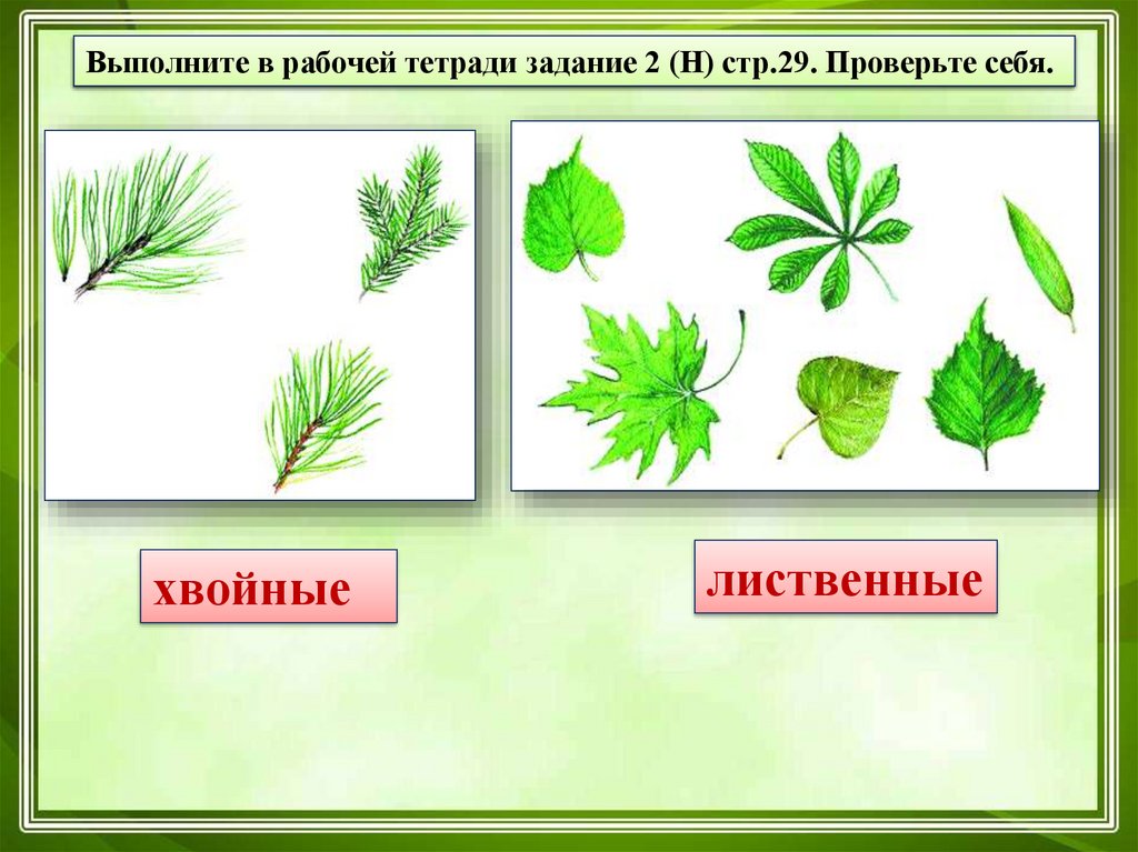 Выполните в рабочей тетради задание 2 (Н) стр.29. Проверьте себя.хвойные