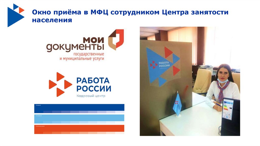 Окно приёма в МФЦ сотрудником Центра занятостинаселения