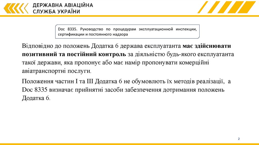 Відповідно до положень Додатка 6 держава експлуатанта має здійснювати