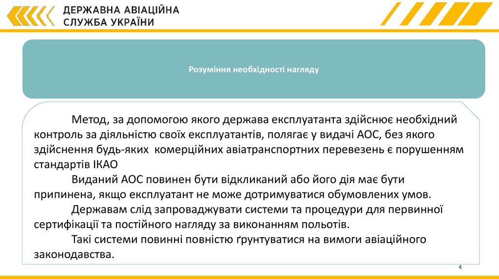 Розуміння необхідності наглядуМетод, за допомогою якого держава експлуатанта здійснює необхідний