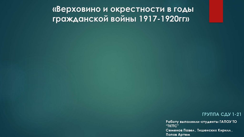 Узнали, а так же рассказали вам про ход Гражданской войны вс.Верховино.Так же рассказали про подполковника Смолина и