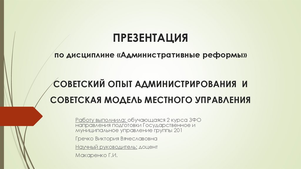 1. ПРЕЗЕНТАЦИЯ по дисциплине «Административные реформы» СОВЕТСКИЙ ОПЫТ АДМИНИСТРИРОВАНИЯ И СОВЕТСКАЯ МОДЕЛЬ МЕСТНОГО УПРАВЛЕНИЯ