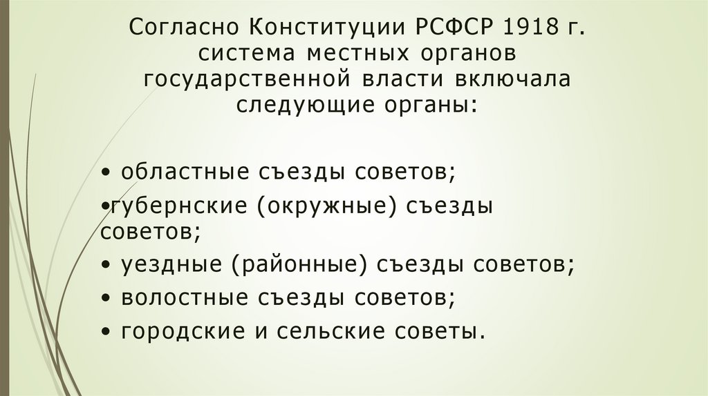 Согласно Конституции РСФСР 1918 г.система м е с тны х органов