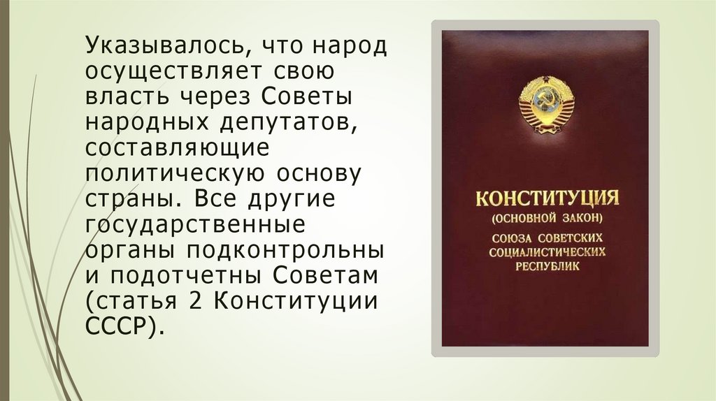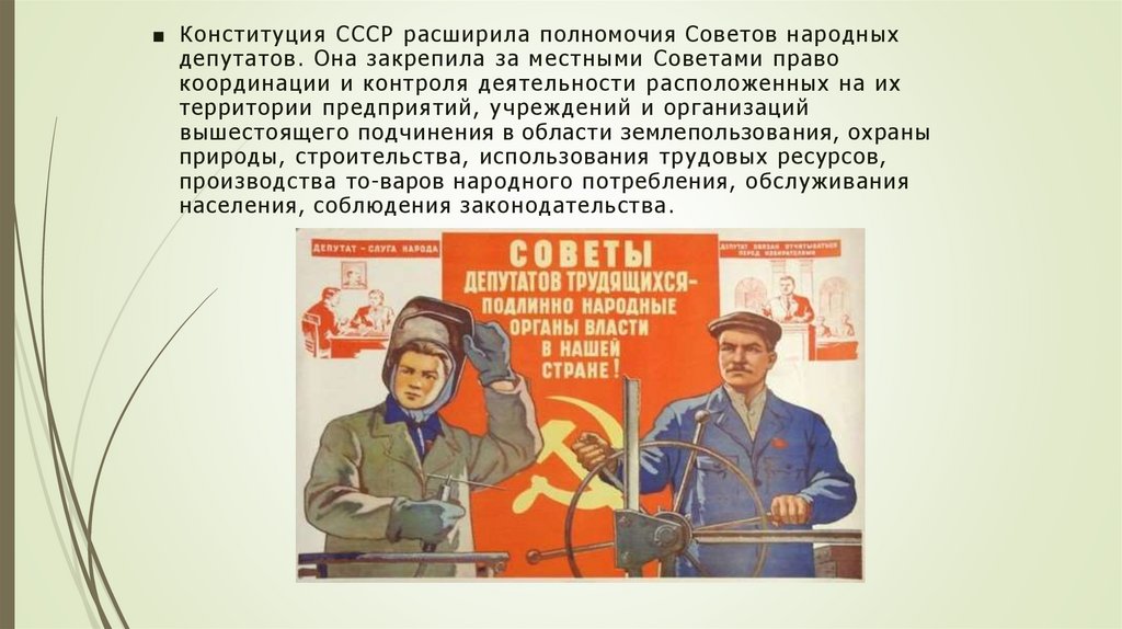 ■ Конституция СССР расширила полномочия Советов народныхдепутатов. Она закрепила за местными Советами право