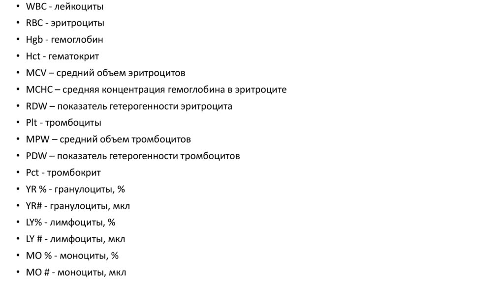 • MCHC – средняя концентрация гемоглобина в эритроците