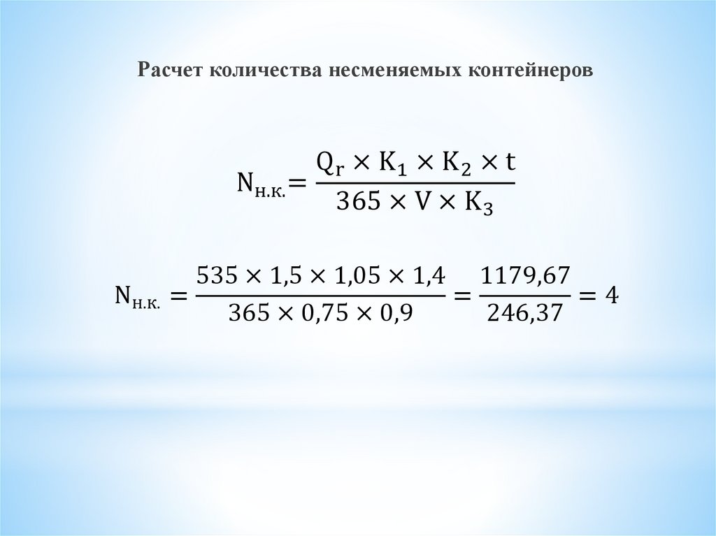 Расчет количества несменяемых контейнеровQ r × K1 × K 2 × t
