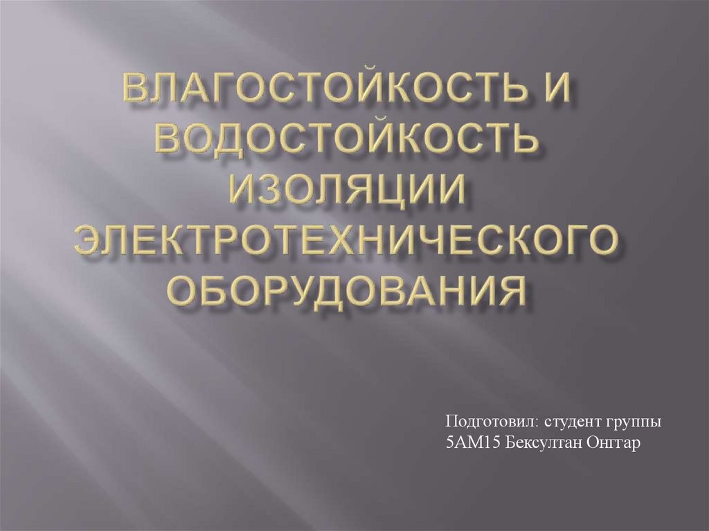 1. Влагостойкость и водостойкость изоляции электротехнического оборудования