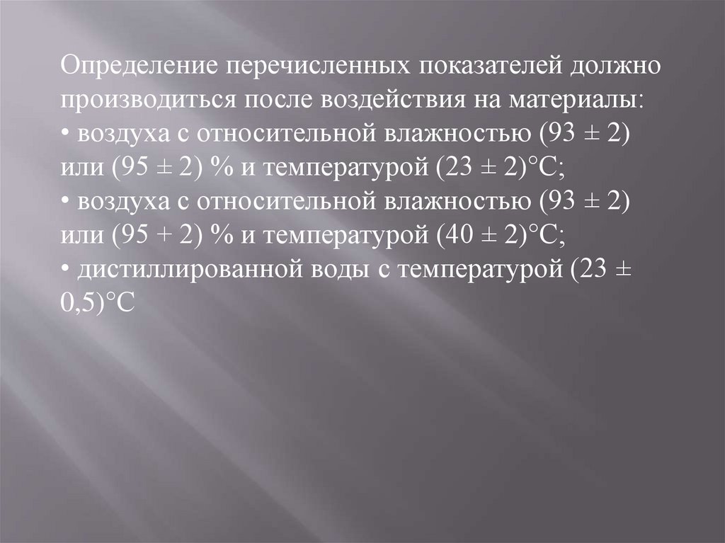 Определение перечисленных показателей должнопроизводиться после воздействия на материалы: