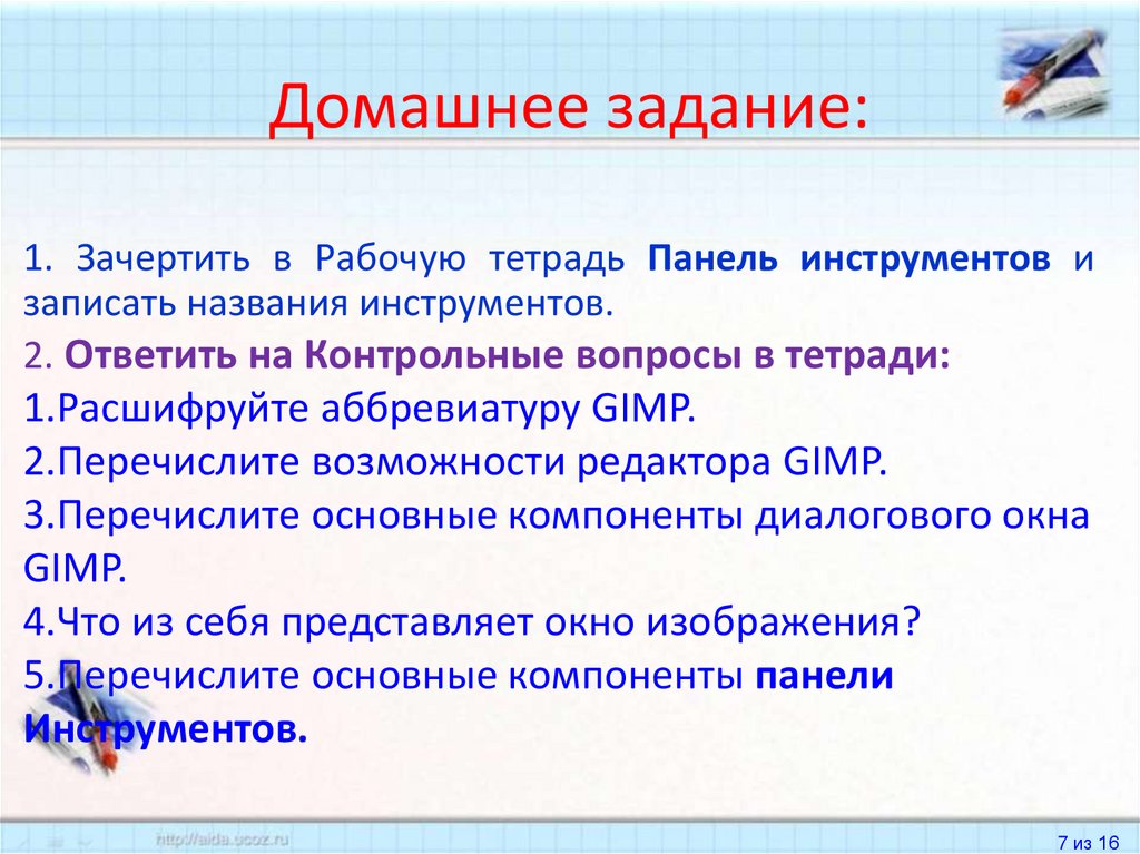 Домашнее задание:1. Зачертить в Рабочую тетрадь Панель инструментов и